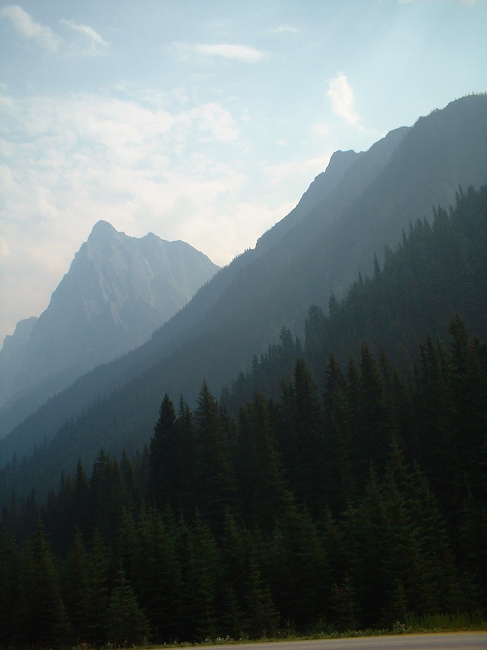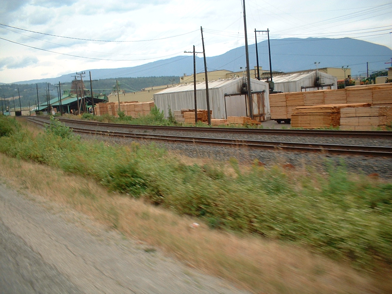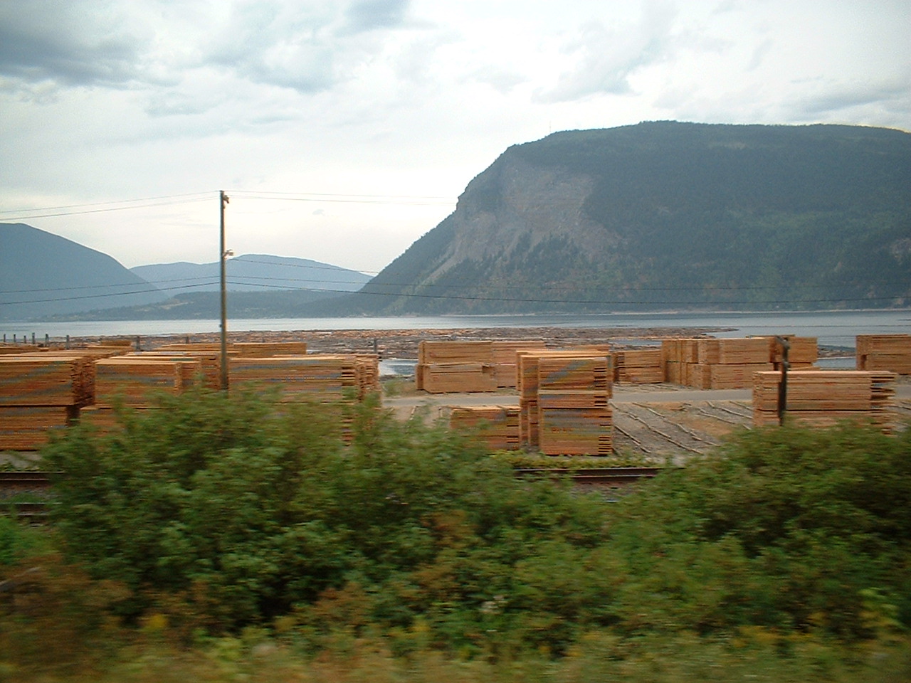 Vi kører forbi et savværk, hvor det nyskårne tømmer ligger stablet langs vejen; bemærk hvordan træstammerne ligger ude i vandet bagved og venter på at blive skåret op. På trods af at vi bare drøner forbi på motorvejen "stinker" det af nyskåret træ.