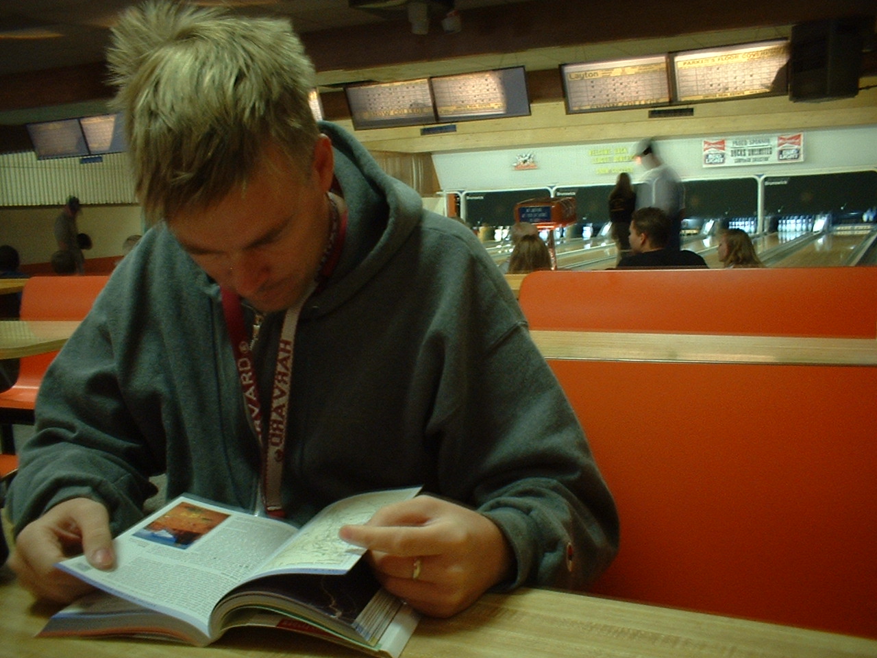 (Torsdag d. 18/9) Vi har spurgt en af de lokale om, hvor man går hen og spiser morgenmad her i Ephraim, hvor vi befinder os; vi endte så nede i bowlinghallens cafeteria, som serverede masser af snasket morgenmad inkl. pandekager, æg, bacon, osv.