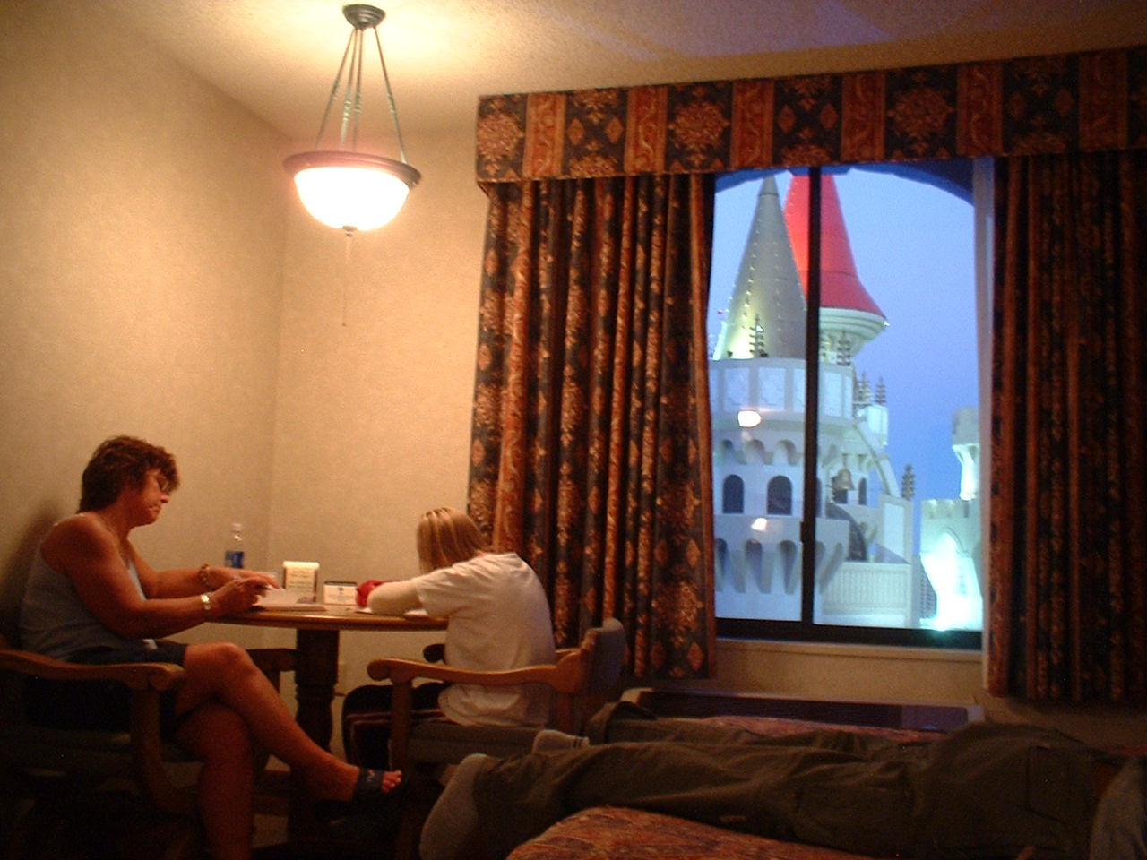 Udsigten fra værelset til bagsiden af Excalibur's tårne!